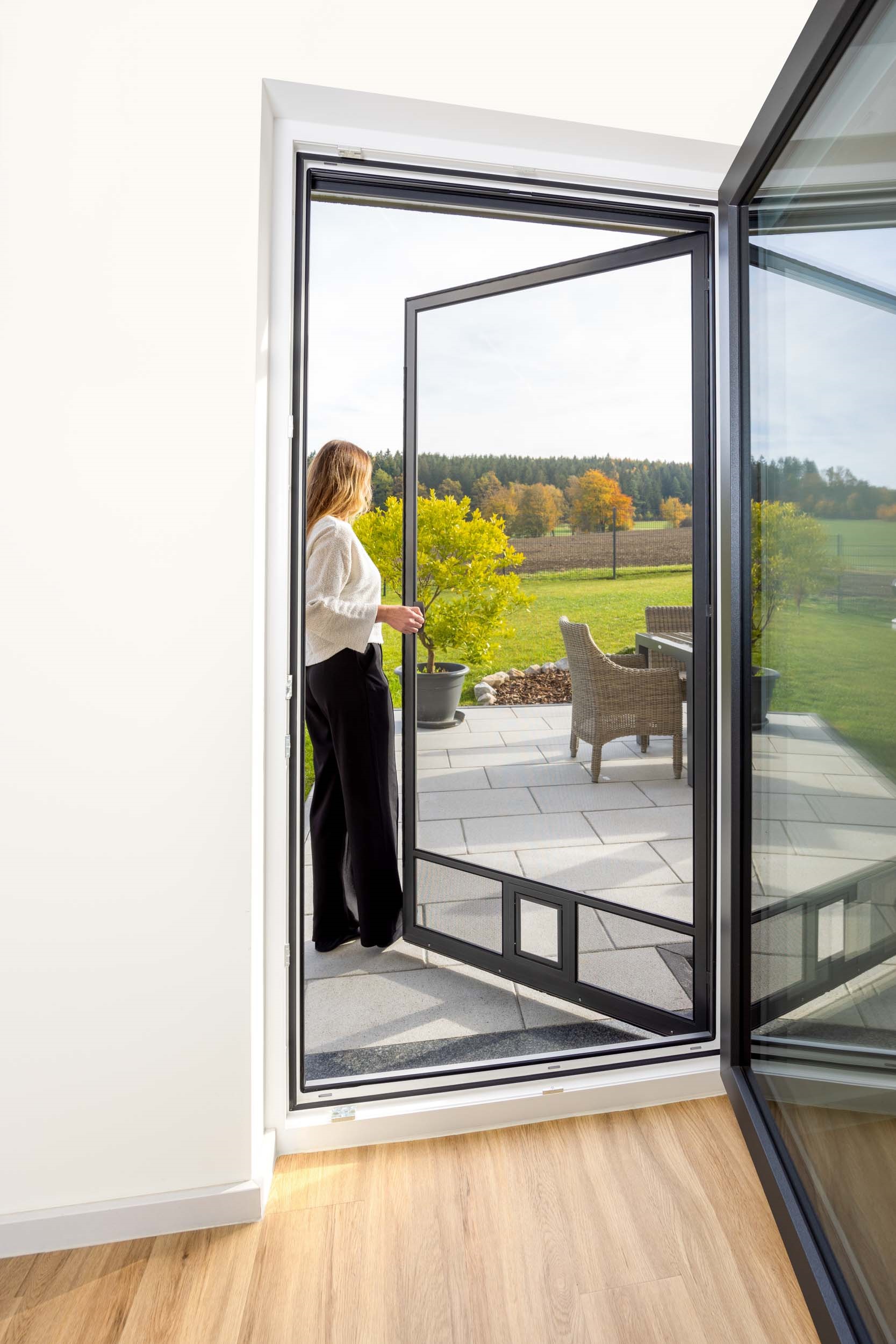 Für jede Tür der perfekte Insektenschutz: Drehtüren können Sie bequem nach außen öffnen. Durch viele Zusatzoptionen lassen sie sich an Ihre Bedürfnisse anpassen. Pendeltüren können Sie in beide Richtungen öffnen (auch, wenn Sie gerade keine Hand frei haben). Schiebetüren können Sie mit nur einem Finger zur Seite schieben. Die Art ist auch besonders als Konstrukt für größere Öffnungen geeignet, indem mehrere Flügel eingesetzt werden.
